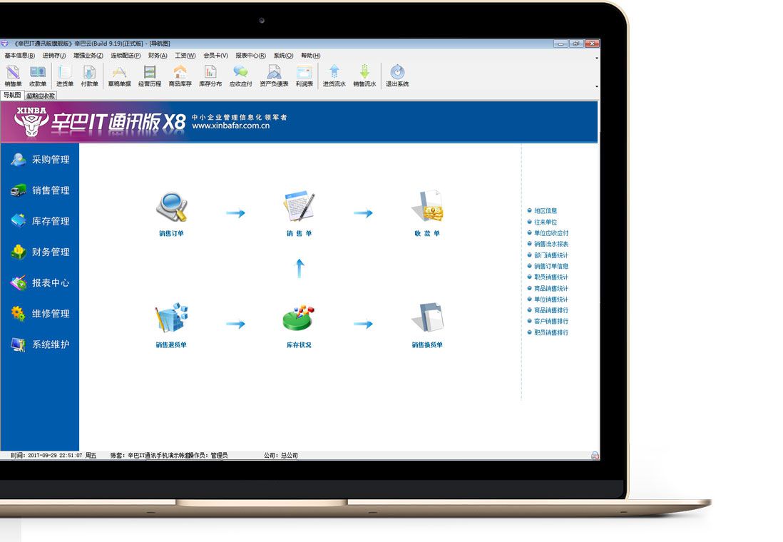 進銷存軟件,進銷存系統。辛巴IT通訊版X8版是四川辛巴遠揚科技有限公司又一次具有里程碑意義的軟件提升,辛巴IT通訊版X8是專業致力于手機通訊進銷存、電腦...